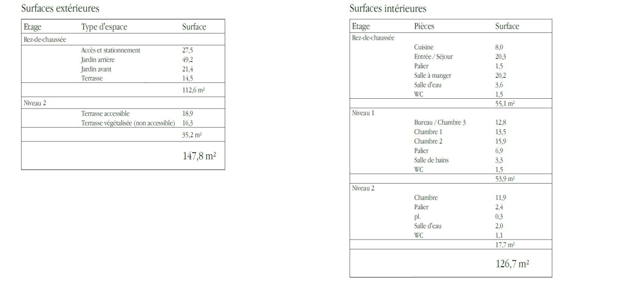 Sur une parcelle de 195m², maison de 127 m² habitables, elle offre une pièce de vie de 50 m² baignée de lumière, ouverte sur deux jardins privatifs avant et arrière, ainsi qu'une terrasse en attique prolongeant la suite parentale.